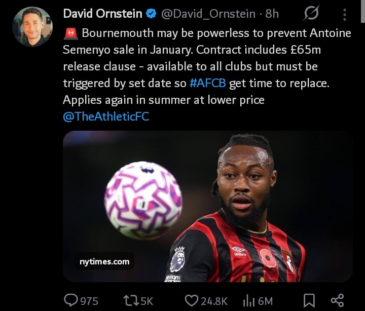 Some Arsenal supporters became convinced that Semenyo was one of their own and questioned why the club had not moved to trigger his release clause while he was still available on the transfer market.
