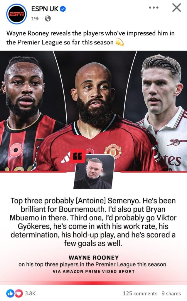 Semenyo has been one of the Premier League’s standout performers this season — just ask Wayne Rooney, one of the greatest strikers in EPL history.