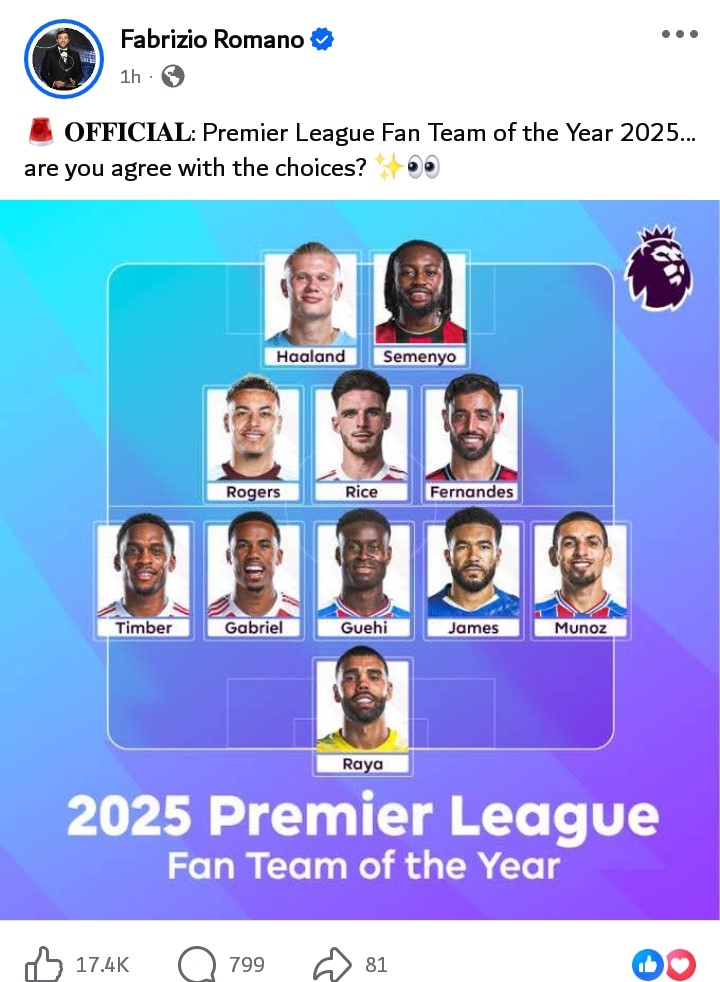 No wonder Semenyo featured in the Premier League Fan Team of the year 2025.