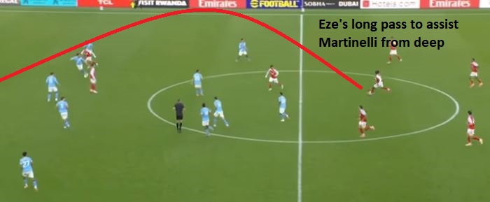 - Unpredictability: Eze’s 1v1 ability creates space for Saka and Martinelli, pulling defenders out of position.