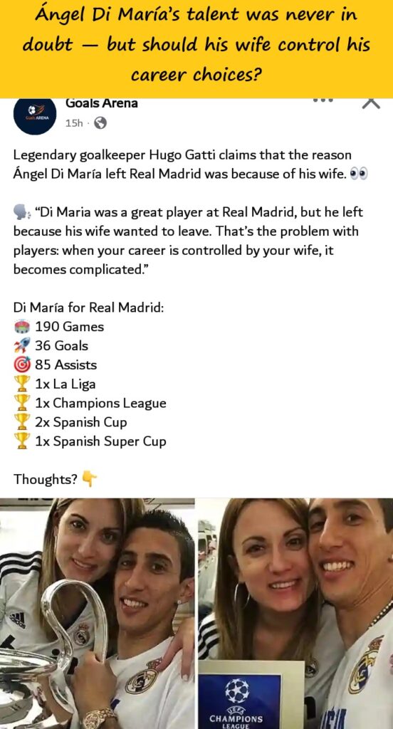 If, as critics suggest, Di María’s career up to that point was heavily influenced or even controlled by his wife, then the results speak for themselves. By any objective footballing measure, those decisions delivered elite-level success — which raises an unavoidable counter-question: was it really such a problem after all?