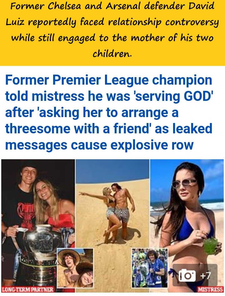 According to multiple media reports, leaked private messages allegedly linked to David Luiz surfaced online, painting an unflattering picture of his personal life during a period when he was engaged to the mother of his two children.