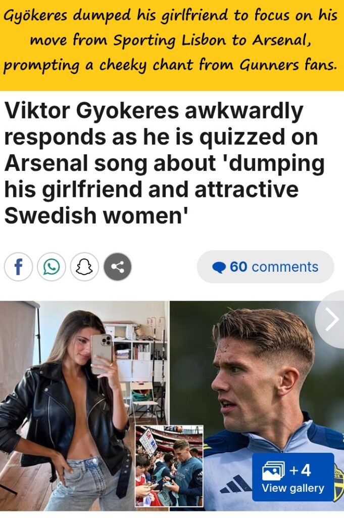 7. Viktor Gyökeres reportedly dumped long-term girlfriend in ruthless bid to force Arsenal move