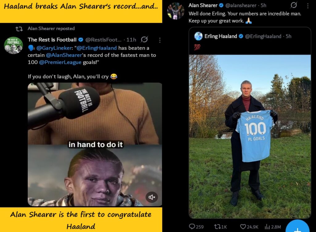 Instead of deflection or bitterness, Alan Shearer went straight to X and publicly congratulated Haaland. His message was short, sincere, and revealing: