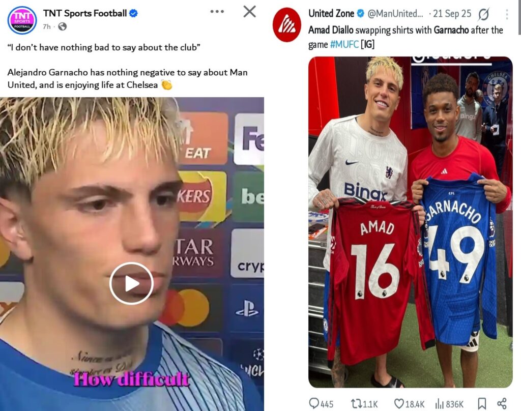 After the final whistle, Garnacho approached Amad Diallo and asked for his Manchester United shirt. The two posed for a photo — a simple exchange rooted in mutual respect rather than rivalry. Garnacho did not hesitate to share the image online, making a clear statement: the badge he once wore still mattered.