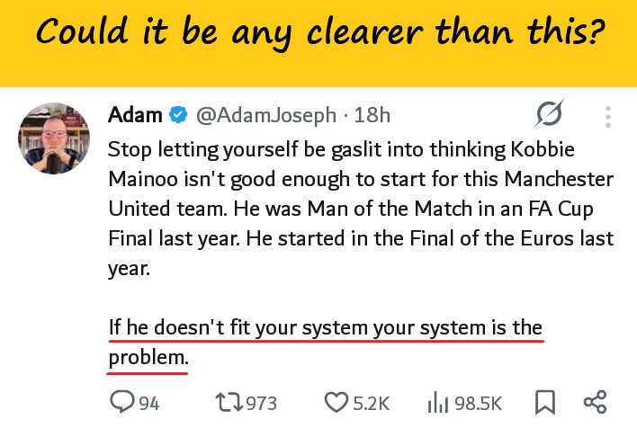 Let us us be real here, Amorim’s departure now removes a significant obstacle and opens the door for United to finally unlock Mainoo’s full potential.