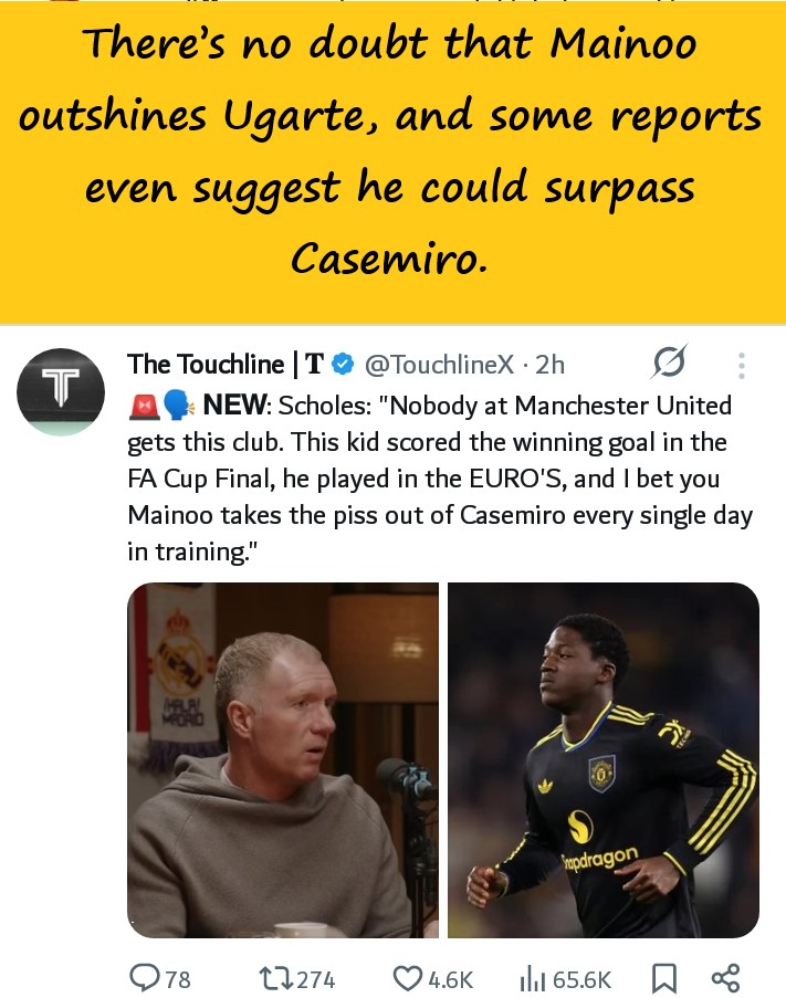 Logic suggests Mainoo should have been developed as Casemiro’s long-term successor, not sidelined. Development cannot happen from the bench. Some Manchester United fans already think Mainoo is better than Casemiro.